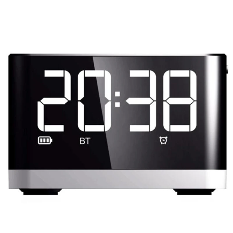 Large Screen Mirror Electronic Led Alarm Clock with Wireless Radio Modern Design Desktop Clock for